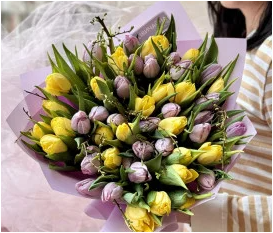 Привет, я давно заказываю цветы для разных событий и могу сказать, что букет из 51 тюльпана вполне может выглядеть объёмно и впечатляюще, но этого не гарантировано — всё зависит от оформления, ширины букета, высоты стеблей и того, как именно они сгруппированы. Иногда 51 тюльпан в узкой форме выглядит вытянуто и не таким «пышным», как меньшее количество, но с более плотной сборкой. Я заказывала подобное — количество 51 было, высота стеблей средняя, оформление довольно простое — и букет выглядел хорошо, но не «гигантским». Если же стебли длиннее, оформление шире и добавлена зелень или упаковка, тогда букеты этого формата становятся действительно выразительными. Итак, если вы хотите действительно объёмный вид, попросите, чтобы букет из 51 тюльпана был плотно собран, с большими бутонами и достаточной шириной, тогда получится желаемый эффект.