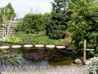 Очень трудно добиться того, чтобы грунт держался на косых стенках водоема. Эта проблема легко решается с помощью откосной циновки. Ее можно использовать и в уже функционирующем пруду, и при закладке нового. Циновка представляет собой рыхлую рогожку из искусственного материала, которая заполняется землей, торфом и галькой. Грунт засаживается растениями или засевается семенами. Со временем растения разрастаются и скрывают искусственную основу. Здесь могут хорошо расти болотные и водные растения.