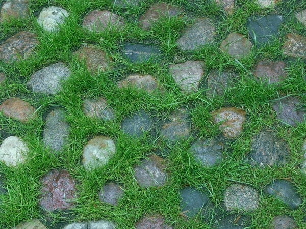 Трава тоже может использоваться в качестве "строительного" материала. Если дорожка между клумб окажется травяной, по ней будет очень приятно ходить. Некоторые сорта газонной травы, обладая цепкостью и стойкостью к вытаптыванию, как раз подойдут для этой цели. Однако гулять по травяной дорожке в дождь чревато, да и к тому же траву надо подстригать, поливать и подкармливать. Так что, выбор за Вами.