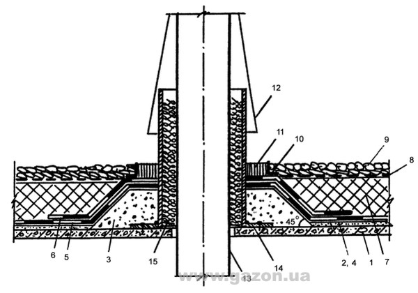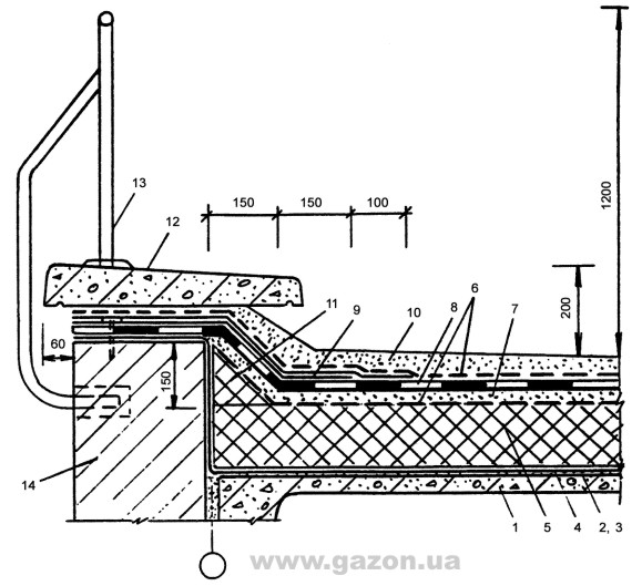 1-15. В связи с особенностями эксплуатируемой кровли (сложность и дороговизна ремонта, сложность определения места протечки, сложные условия эксплуатации кровельного ковра и т.д.) необходимо применять самые высококачественные гидроизоляционные материалы, а работы должны производить специализированные кровельные фирмы.