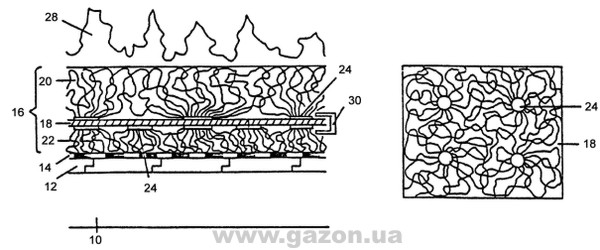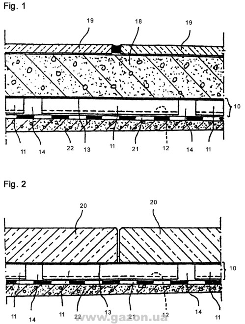В состав структурного слоя входит монолитная плита, соединенная с изоляционной плитой, и усиленные маты из нейлона. Маты из нейлона приклеены к изоляционной плите при помощи диффузионной клейковины или механически соединены с ней. При этом структурный слой включает в себя нетканый материал, соединяемый с несущей плитой, а также предусмотрено наличие одного или нескольких слоев проволочной сетки.