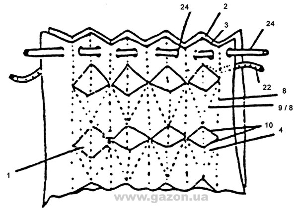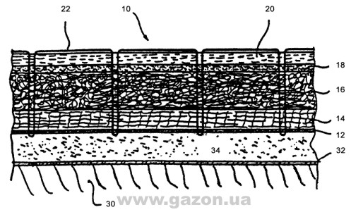 Язычки покрыты полотном озеленения (водоснабжающим холстом) согласно патенту Германии Р 3502296.