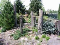 Первым делом нужно позаботиться о камнях для альпинария. Не стоит использовать вместо природного камня куски бетона или прессованный камень. Используйте для всей горки камни одного типа весом от 12 до 100 кг. Старайтесь отбирать камни с эродированной поверхностью. Для альпинария размером 3 х 1,5 м. Вам потребуется 1-2 тонны камней. Для устройства рокария можно использовать известняки, песчаники, туфы, сланцы, граниты и базальты. Две последние породы выгодно отличаются от остальных высокой прочностью. Горка, выстроенная из таких камней будет более долговечной.