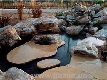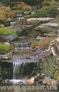 Водопады и каскады. Водопад образуется, когда поток воды падает со значительной высоты не менее чем 1,5-2 метра. Размерами и формой струй можно управлять с помощью водостоков. Так, например, мощный поток удается получить, если пропускать большие объемы воды через узкие стоки. При ограниченном поступлении воды ее пускают по поверхности массивной каменной глыбы. Тонкая зеркальная гладь получается в том случае, если широкий ровный водосток ограничен с боков направляющими бордюрами.