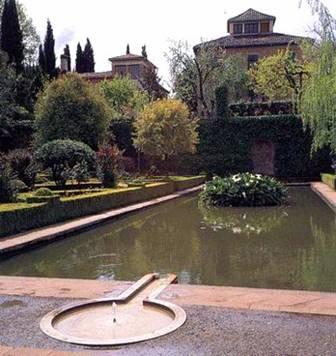 Смешанный сад в Гранаде, а точнее на холмах Серро-дель-Соль, возвышающихся над городом, был спроектирован в 13 веке как летняя резиденция правящей династии. Название этого сада взято из арабского и означает «Сад Творца» и все пространство распределено так, что как бы вращается вокруг одного стержня. Повсюду здесь царит атмосфера покоя и таинственности, что, в немалой степени, достигается через использование водной составляющей.